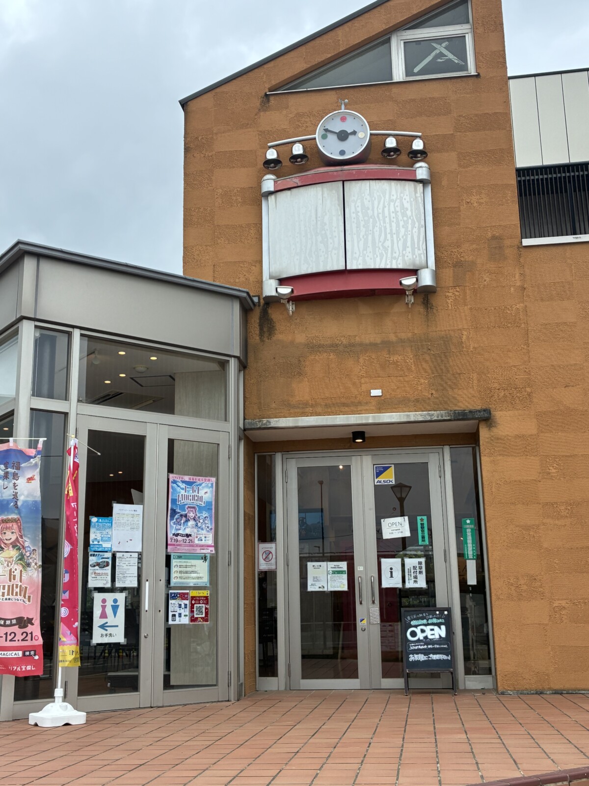 3年の歳月が過ぎ、「希望のとびら」はもう役割を終えたのか、それとも今も希望に向けてドアを開き続けているのか。ありました。3年前と違ってフロアの奥に立っていました。フロアに居た方にお聞きしたら、ドラえもんに登場する「どこでもドア」を真似ていると勘違いされる恐れがあったので、撤去する意見もあったそうですが、「希望のとびら」はまだ双葉町に必要との意見でまとまり、設置が継続することになりました。ただ、ちょっと遠慮してフロアの奥へ引越ししたそうです。